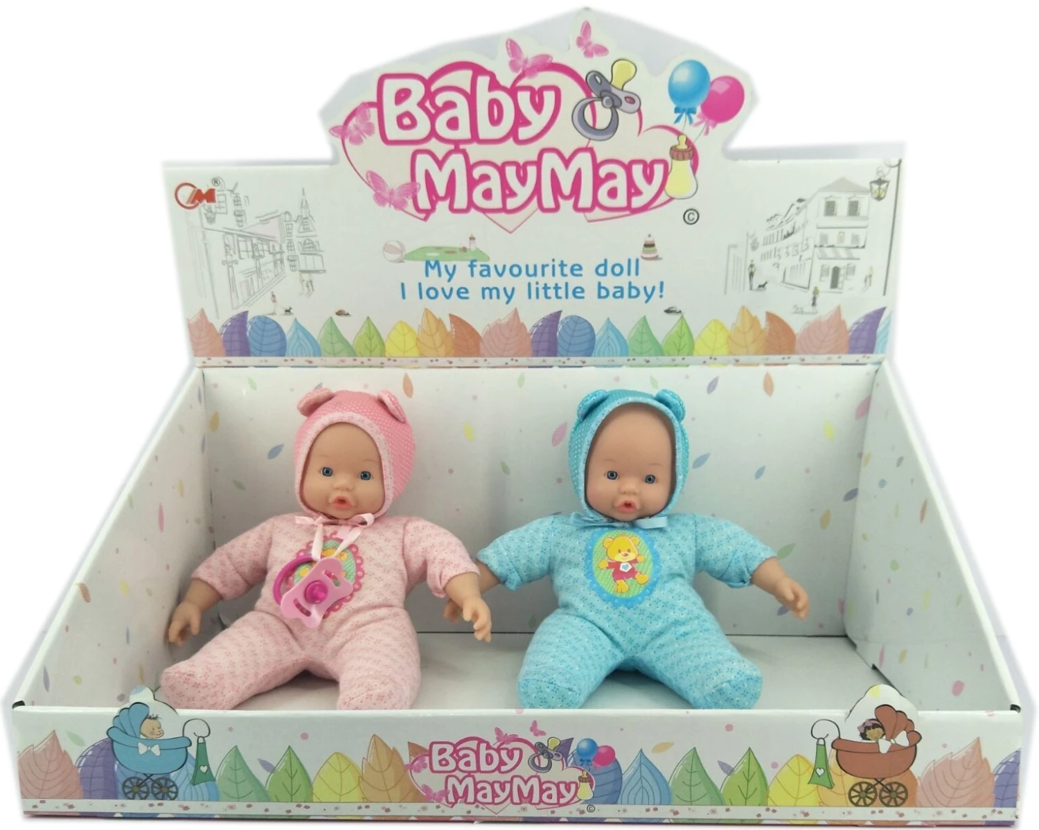 Κούκλα Μωρό Baby May May Με Πιπίλα Και Ήχο 20 εκ. Κούκλω μωράκι που κλαίει. Βγάλε την πιπίλα και το μωράκι θα κλάψει! Λειτουργεί με μπαταρία (περιλαμβάνεται)