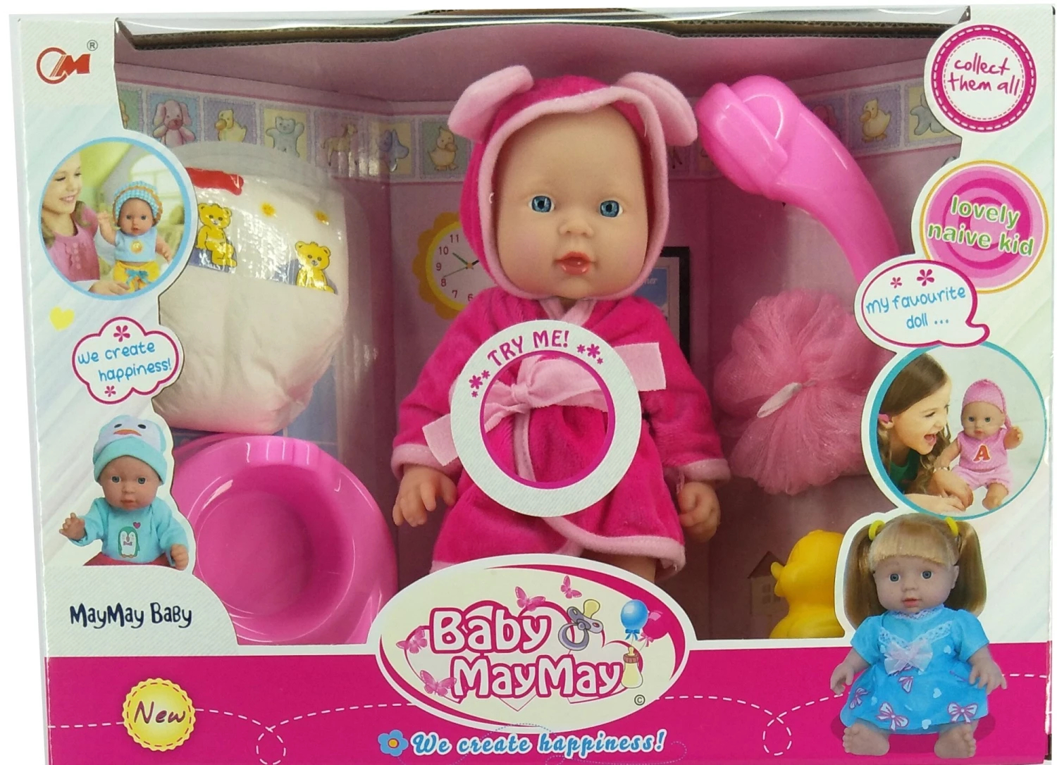 Κούκλα Μωρό Baby May May Με Σετ Μπάνιου Το μωράκι ετοιμάζεται για μπάνιο! Το σετ περιλαμβάνει το αξιαγάπητο μωράκι, μπανιέρα και διάφορα αξεσουάρ μπάνιου!