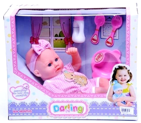 Κούκλα μωρό 30 εκατοστά και σετ φαγητού. *Τα σχέδια και τα χρώματα μπορεί να διαφέρουν.