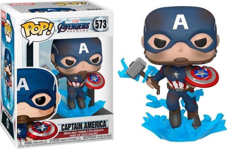 Funko Pop Marvel: Avengers Endgame Captain America With Broken Shield And Mjolnir #573 Αυθεντική φιγούρα Funko POP! από βινύλιο, ύψους περίπου 10 εκατοστών.