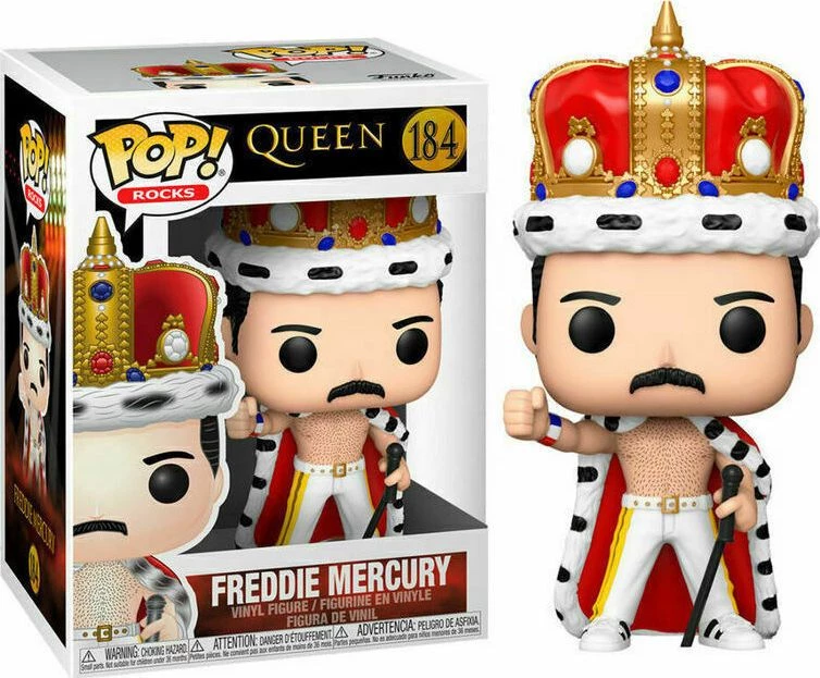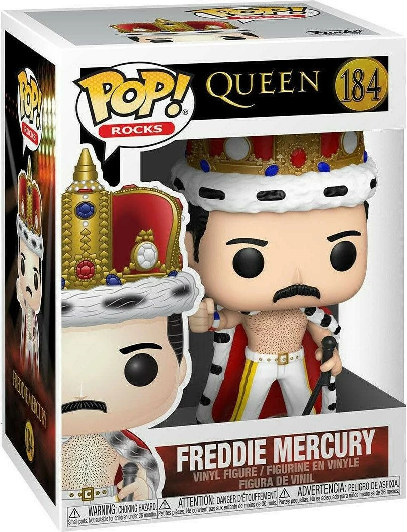 Funko Pop Rocks:Frediier Mercury King #184 Φιγούρα του Freddie Mercury σε στιγμιότυπο από την ιστορική συναυλία των Queen στο στάδιο Wembley το 1986. Υλικό: βινύλιο Ύψος: περίπου 10 εκ.