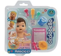 Cicciobello Φιλαράκια 11εκ Και Αξεσουάρ Πιέστε τα μάγουλα ή το πιγούνι για να αλλάξει έκφραση το μωράκι. Προετοίμασε το φαγητό του και τάισέ το. Η πάνα αφαιρείται.