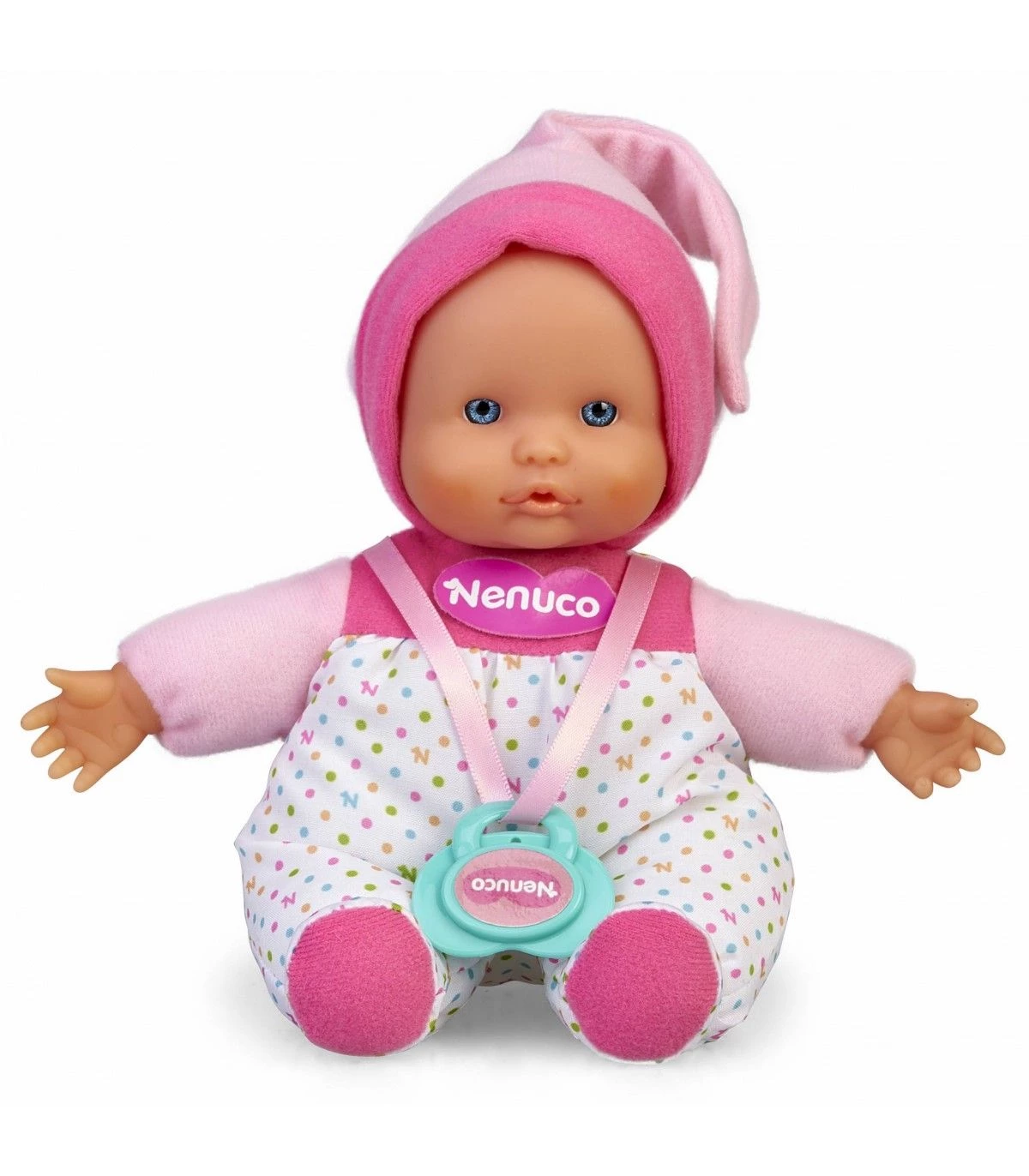 Κούκλα Nenuco Cute Άσπρο Το Nenuco Cute είναι πολύ απαλό, είναι το τέλειο μέγεθος για τα μικρότερα χέρια. Τα ιώδη ρούχα της με λεπτομέρειες, φοράει ένα ταιριαστό καπέλο και περιλαμβάνει μια αποκλειστική πιπίλα. Έχει μαλακό σώμα και μερικά άκρα όπως τα χέρια και το μικρό του πρόσωπο είναι κατασκευασμένα από…