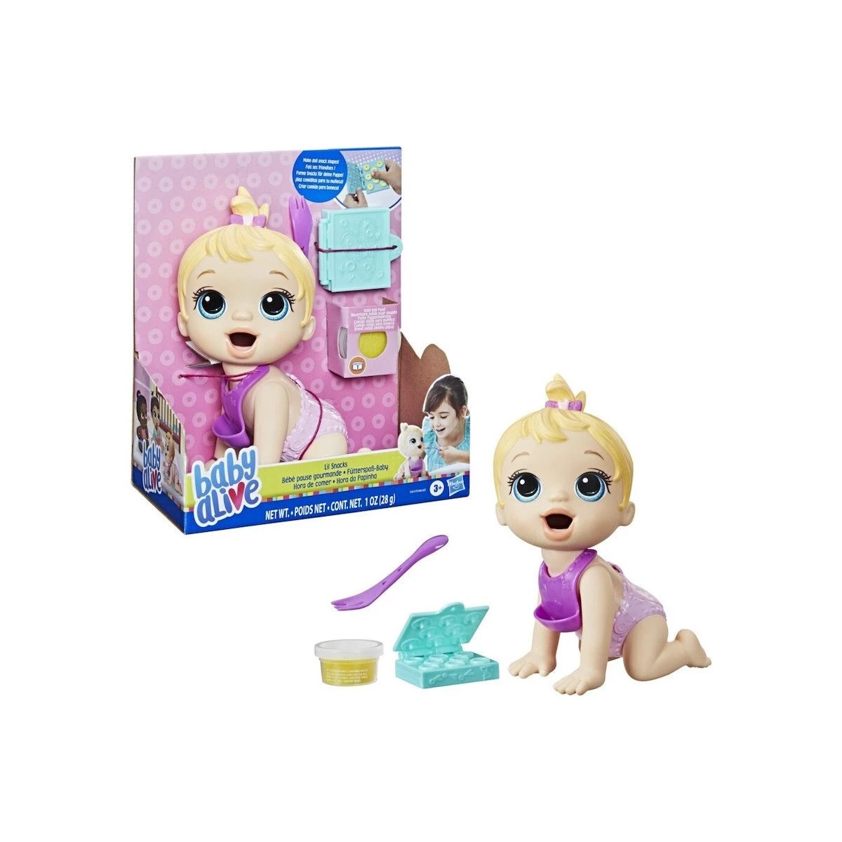 Baby Alive Lil Snacks Blonde Η κούκλα Baby Alive Lil Snacks Doll είναι πανέτοιμη για να παίξετε μαζί της και να προσποιηθείτε ότι την ταΐζετε ένα σνακ! Το σετ περιλαμβάνει στερεή επαναχρησιμοποιούμενη παιδική τροφή και καλούπι-φαγητοδοχείο, έτσι ώστε τα παιδιά να μπορούν να φτιάξουν σνακ σε διάφορα σχήματα για να…