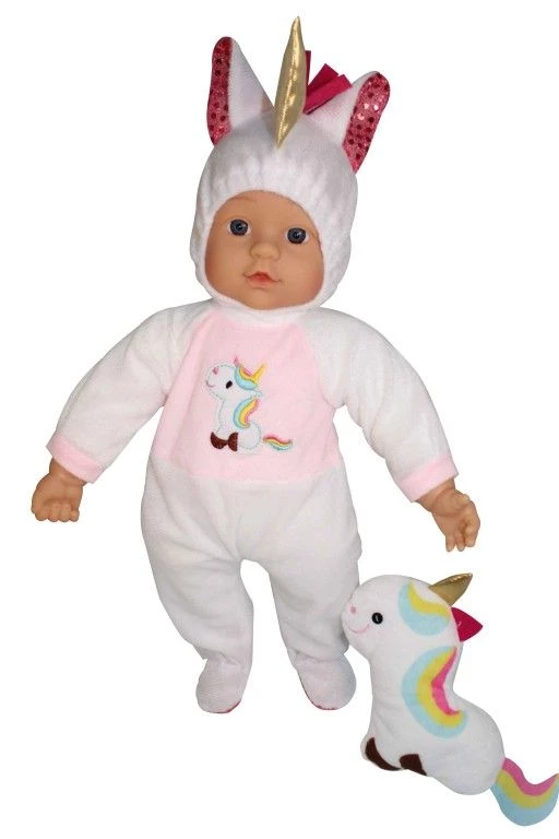 Κούκλα Bambolina 41εκ Unicorn Κούκλα μωράκι 41εκ. με βελούδινο φορμάκι σε σχήμα μονόκερου. Περιέχει και ένα μικρό λούτρινο μονοκεράκι.
