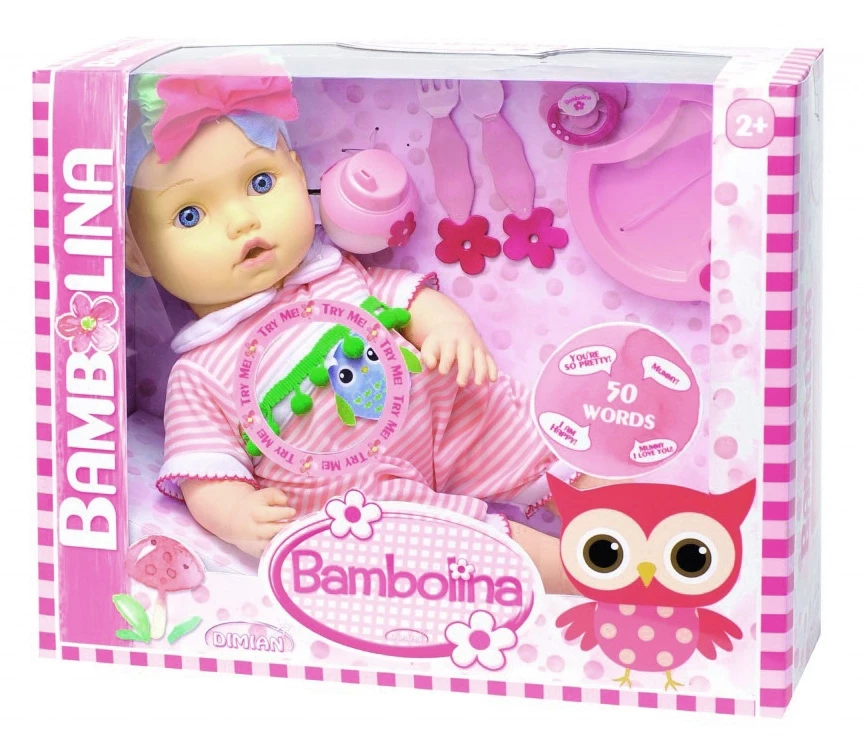 Κούκλα Bambolina Μιλάει Ελληνικά Η Bambolina μιλάει Ελληνικά! Πίεσε την κοιλίτσα της για να ακούσεις 50 διαφορετικές λέξεις! Θα ακούσεις τις πρώτες της λέξεις όπως, μαμά, μπαμπά, γεια σου… και άλλες πολλές! Είναι έτοιμη για αγκαλιές και φαγητό! Είναι ντυμένη με ένα απαλό φoρμάκι, ιδανικό για μικρές ηλικίες! Συνοδεύεται από…