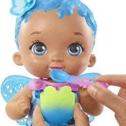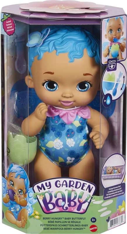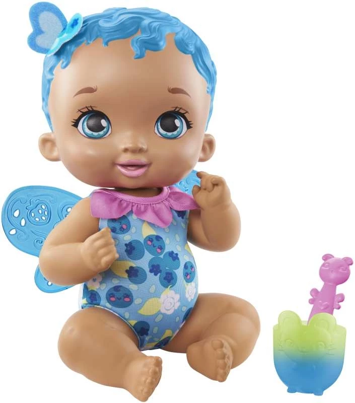 My Garden Baby Μωράκι Ώρα Για Φαγητό (Μπλε Μαλλιά) Αυτό το μωράκι Garden Baby είναι γεμάτο με γλυκές εκπλήξεις!Τα παιδιά θα ξετρελαθούν με τα αξιολάτρευτα φτερά, τα φανταστικά μαλλιά και το άρωμα μύρτιλου. “Ταΐστε” το μωράκι με το κύπελλο και το κουτάλι – απλά προσθέστε κρύο νερό για να δείτε…