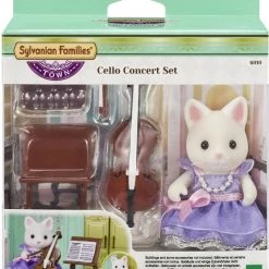 Sylvanian Families: Town Series Cello Concert Set Το σετ Cello Concert περιλαμβάνει την Tiffany, της οικογένειας Silk Cat, με πανέμορφο, μωβ φόρεμα και περιλαίμιο. Το σετ επίσης περιλαμβάνει το τσέλο, βάση μουσικής και φύλλο βαθμολογίας.